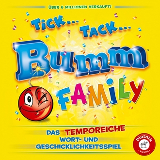 Wortakrobaten, Silbenjongleure und Reimartisten dürfen sich freuen: Der Klassiker „Tick Tack Bumm“ wartet mit einer neuen Edition auf. Nach der Originalversion und einer Kompaktausgabe für unterwegs sowie der Junior- und der Party-Edition ist im Piatnik Spieleverlag jetzt ein temporeiches Wort- und Geschicklichkeitsspiel erschienen, das die typischen Elemente der bisherigen Ausgaben vereint, um neue Geschicklichkeitsaufgaben erweitert und in der die tickende Bombe wieder die Hauptrolle spielt: „Tick Tack Bumm Family“.